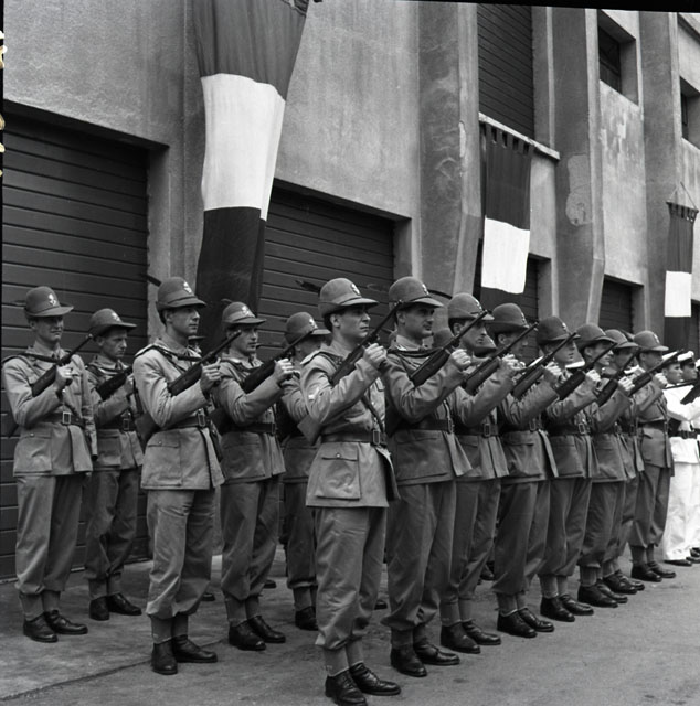 Commemorazione delle battaglie del 5 e 6 luglio del 1918 combattute sul Sile, sul Piave e sulle Alpi Giulie dal 7. e 8. battaglione delle Guardie di finanza. La manifestazione si svolge nella caserma Postiglioni sul molo Fratelli Bandiera, in presenza di don Beari, cappellano militare, del magg. Ravotto, comandante del Circolo e del gen. Rostagno, comandante del Corpo delle Guardie di finanza.