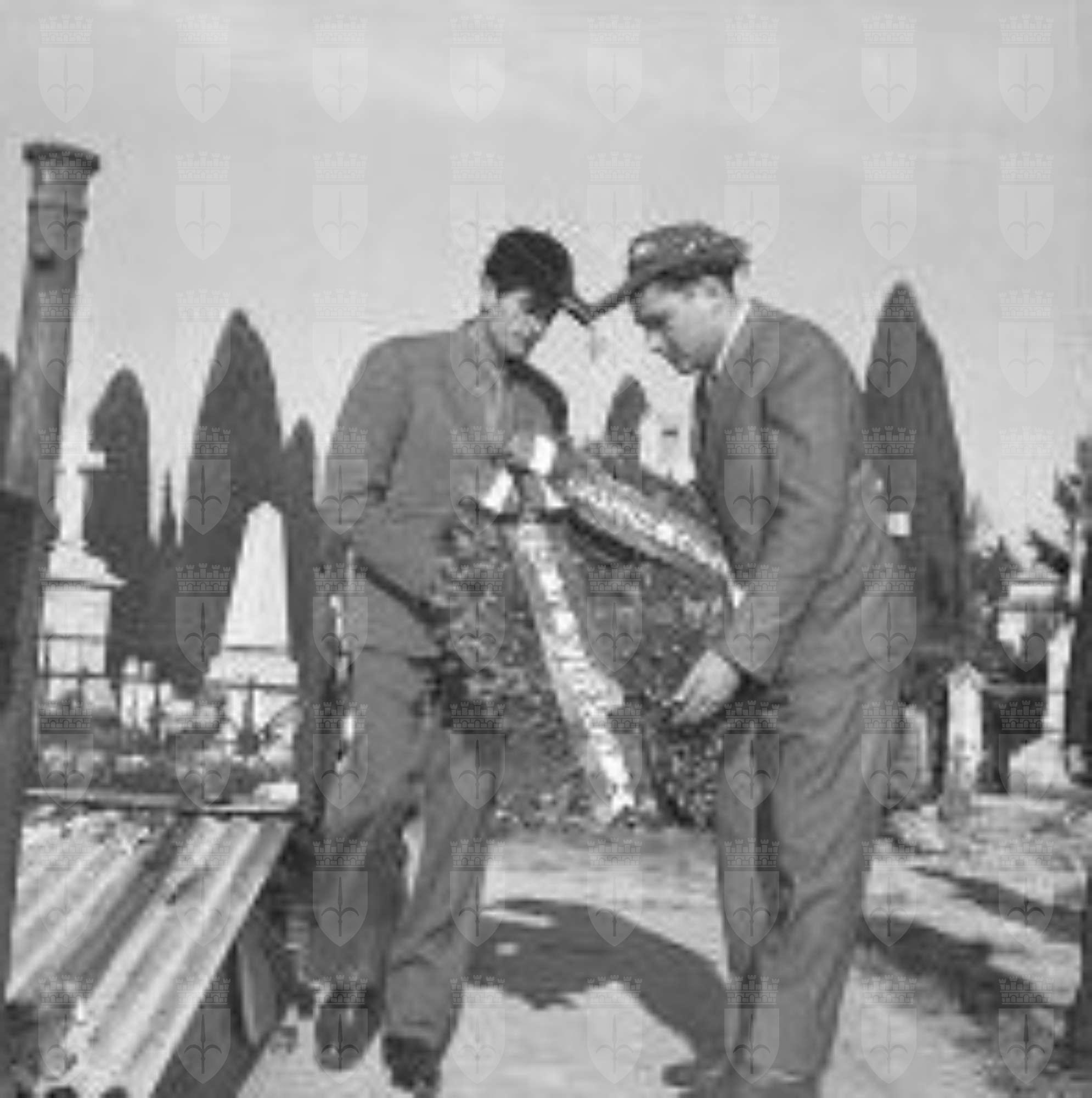 Servizio fotografico che documenta gli avvenimenti, anche drammatici, che precedettero il ritorno di Trieste all'Italia nell'ottobre del 1954. L'agenzia Giornalfoto accorpò a posteriori, in un unico ampio reportage, la documentazione fotografica prodotta a partire dai fatti di sangue dei primi di novembre 1953 fino alla partenza degli alleati. Nel cimitero di Sant'Anna, un gruppo di studenti dell'Universita di Napoli rende omaggio ai caduti negli scontri del 5 e 6 novembre 1953.