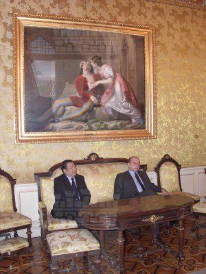Il sindaco Roberto Dipiazza e l'ambasciatore cinese Chen Wen Dong al Museo Revoltella ammirano la scultura "Il taglio dell'istmo di Suez "ed il quadro "Paolo e Francesca"./p