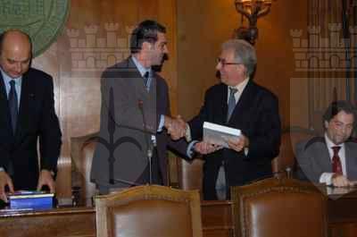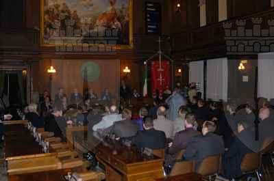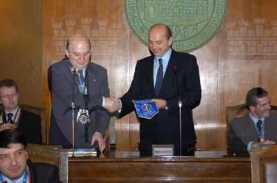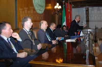 Il sindaco Roberto Dipiazza ed il Presidente del Consiglio comunale Bruno Sulli ed l'assessore comunale Maurizio Bucci con il presidente di Round Table Italia Maurizio Giudici e gli altri rappresentanti presenti al Meeting organizzato dalla Round Table Italiana in collaborazione con il Comune di Trieste, durante l'incontro avvenuto nella sala del Consiglio del Municipio.