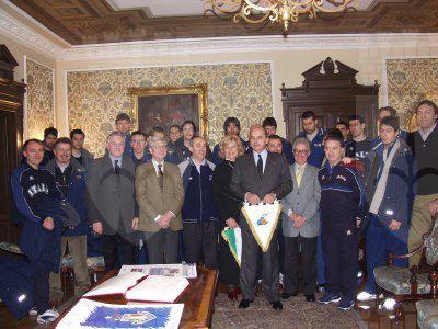 Il sindaco Roberto Dipiazza, il presidente del Consiglio Comunale Bruno Sulli, Giorgio Rossi, Marcella Skabar presidentessa dell'Associazione Azzurri d'Italia, Franco Degrassi, Dino Meneghin e tutto il gruppo della nazionale