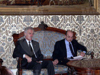 Il sindaco Roberto Dipiazza, Giuseppe Lo Duca allenatore, e Franco Bandelli consigliere comunale e presidente dell'AIAT