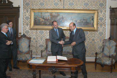 Il sindaco Roberto Dipiazza ed Alfons Kloß ambasciatore d'Austria durante l'incontro nel salotto azzurro del Municipio. Presente anche il presidente del Consiglio comunale Bruno Sulli