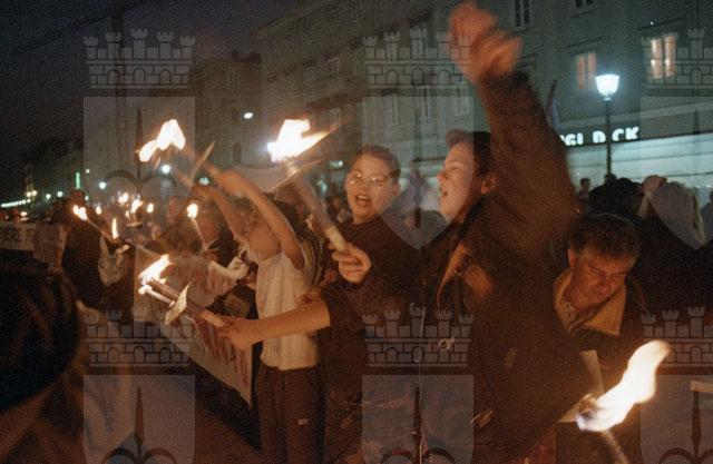 Protesta serbi, guerra Balcani, piazza sant'Antonio, 1999.
