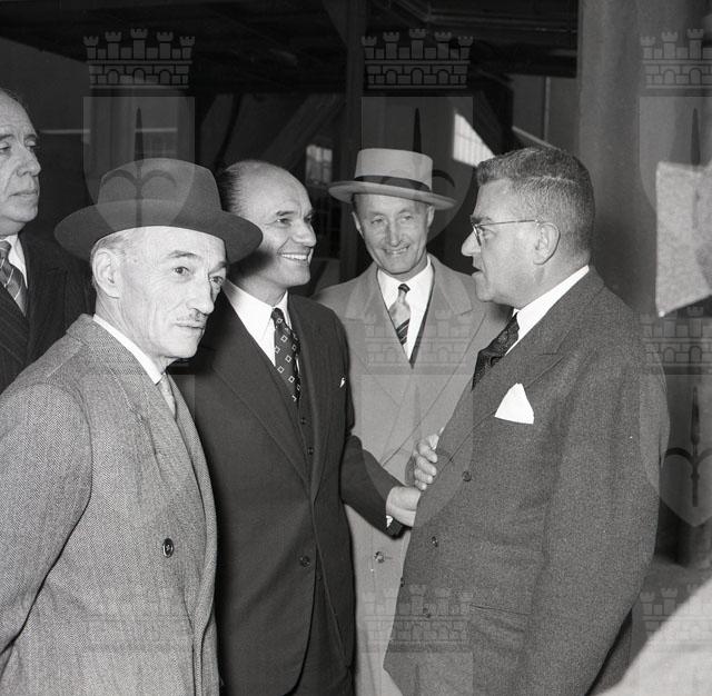 Inaugurazione di una nuova cementeria dell'Italcementi al Porto industriale di Zaule, alla presenza del presidente del Consiglio Scelba e del sottosegretario Oscar Luigi Scalfaro (da: Trieste 1900-1999. Cent'anni di storia, v. 6, p. 298)