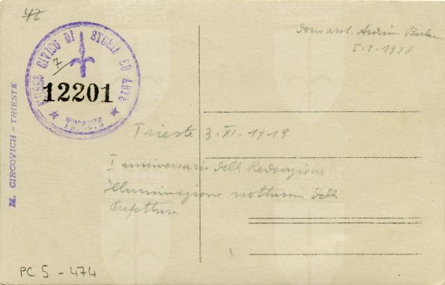 Illuminazione notturna del palazzo della Prefettura in occasione del I anniversario della redenzione di Trieste