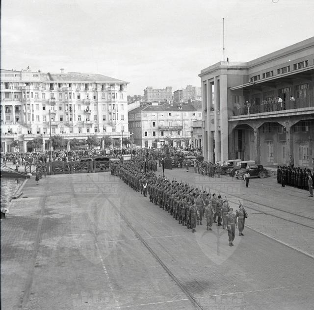 Il 22 ottobre 1951 il primo battaglione del Reggimento britannico South Lancashire, che per quattro anni ha prestato servizio lungo la linea di demarcazione tra le due zone del Territorio Libero, si imbarca sul piroscafo Empire Test, attraccato alla Stazione Marittima. Il battaglione e' diretto a Karthum, nel Sudan anglo-egiziano. Le truppe, partendo dalle caserme di via Rossetti bagagli in spalla, lasciano Trieste sfilando per le vie del centro, accompagnate dalle bande del TRUST, del reggimento North Staffordshire e del reggimento Northamptonshire