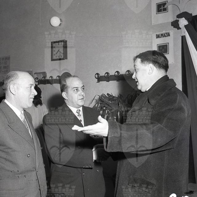 Oltre 700 bambini di eta inferiore ai 12 anni, profughi giuliano-dalmati, appartenenti alle classi piu indigenti, partecipano ad un pranzo natalizio offerto dal locale Ente organizzatore dell'Amministrazione per gli aiuti internazionali, nei locali della mensa comunale di via Gambini