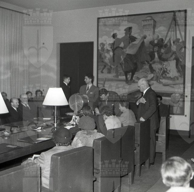 Inaugurazione del Teatro Nuovo, ex Auditorium di via Giustiniano, sede della Compagnia del Teatro stabile di prosa, con la prima rappresentazione de La donna di garbo di C. Goldoni (da: Il Piccolo, 21 e 24 dicembre 1954). Varie riprese dei locali interni, la sala e il palcoscenico, il buffet, la parete con il grande pannello ideato dall'artista locale Federico Righi, la compagnia durante alcuni momenti delle prove.Laura Solari è la protagonista de "La donna di garbo" di Carlo Goldoni
