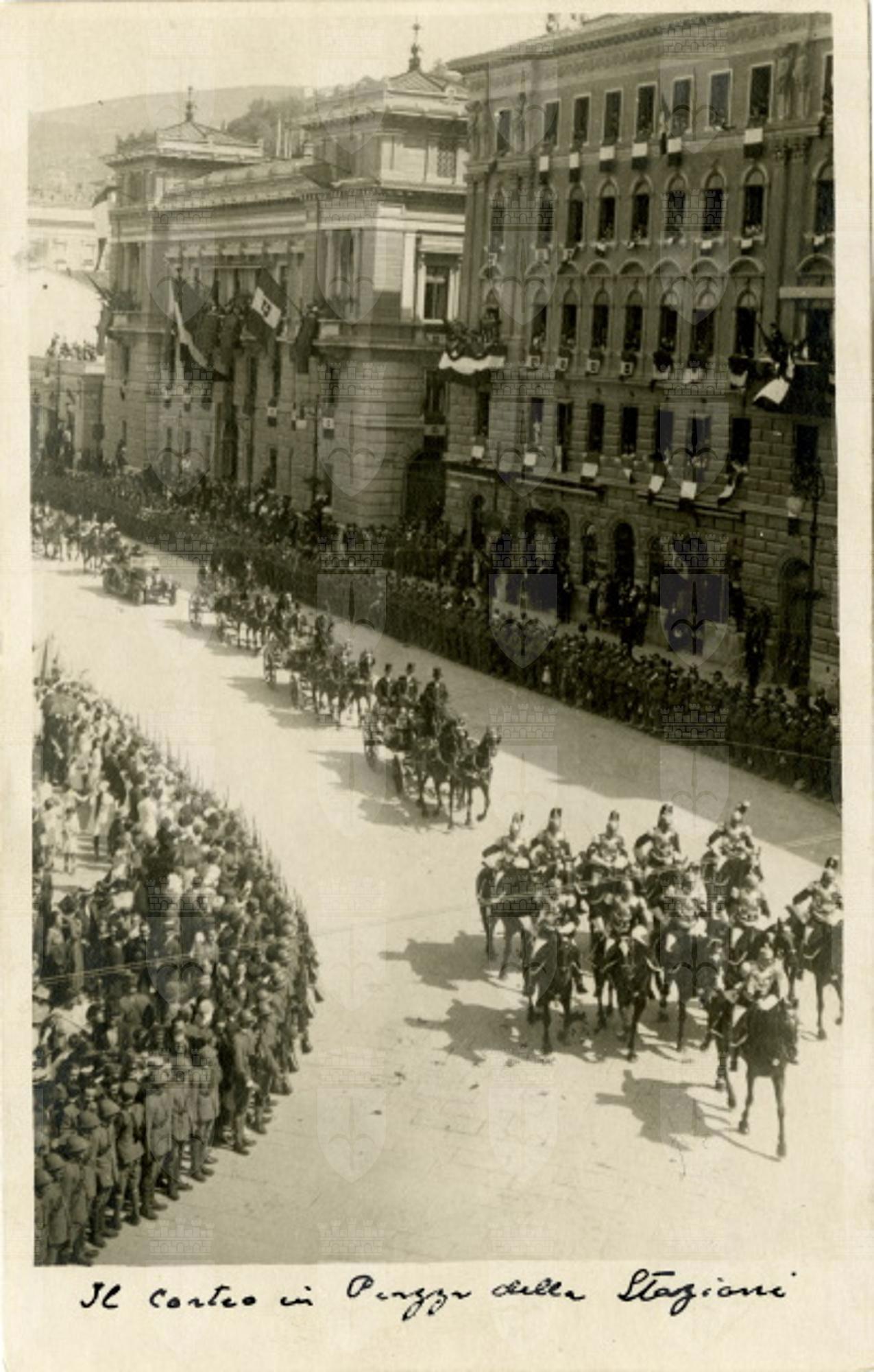 Corteo delle autorità in occasione delle celebrazioni per l'annessione di Trieste all'Italia.