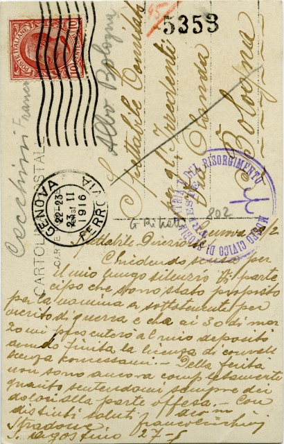 Franco Cecchini, nato a Trieste nel 1894, volontario irredento 6° Rgt. Bersaglieri. Nome da assumersi dall'arruolato: Rovighi Dante di Alberto Via Mazzini 45
