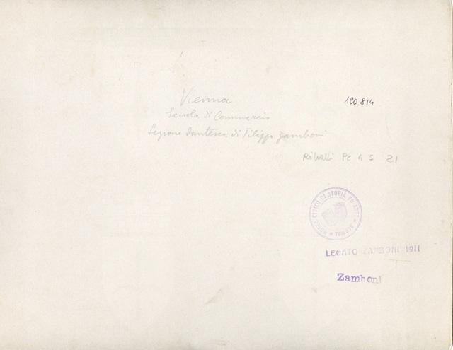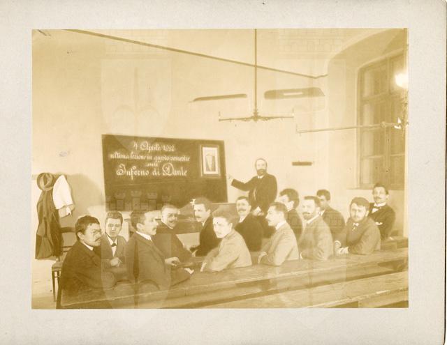 Gruppo di allievi con Filippo Zamboni: ultima lezione in questo semestre sull'Inferno di Dante: Vienna 4 aprile 1892