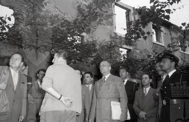 Il dott. Palermo, presidente della Corte d'Assise, compie un sopralluogo a Mattonaia, località nei pressi di Domio, in relazione al processo per il delitto di Emilio Jurissevich, soprannominato la "primula rossa", ucciso da due sicari dell'OZNA il 19 novembre 1949 per motivi politici.