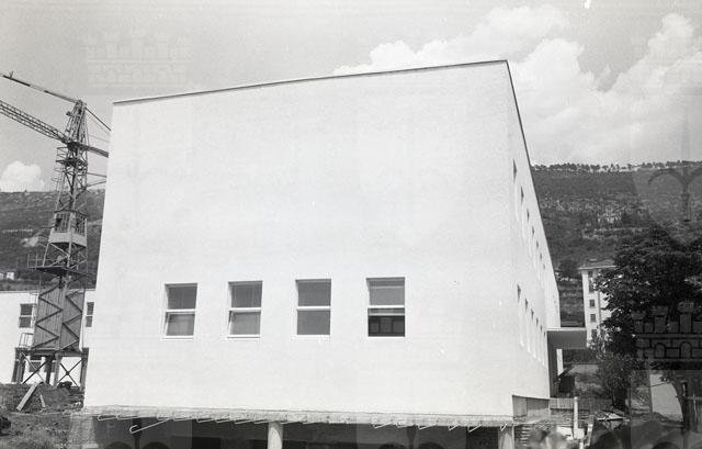 Vedute della scuola media, poi intitolata a Mario Codermatz, ancora in costruzione.