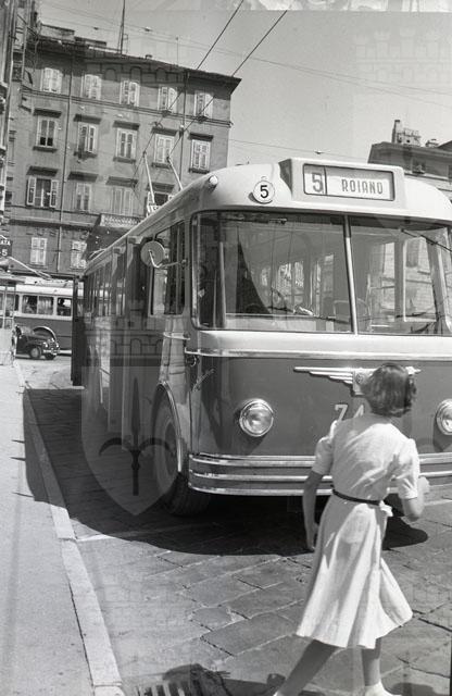 La vecchia pensilina della stazione centrale e la filovia della linea 5 in piazza Goldoni.