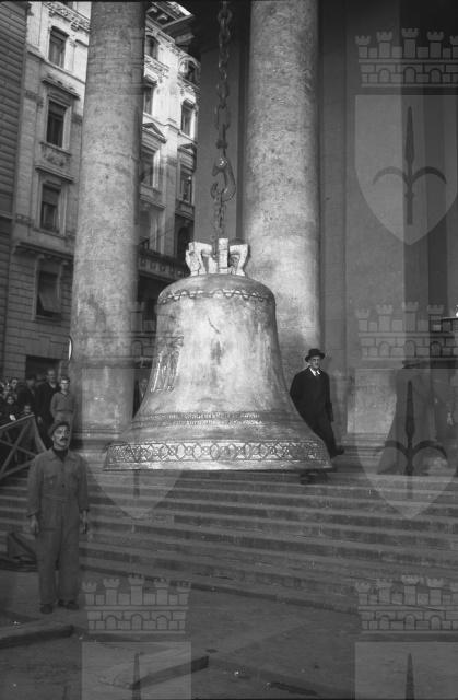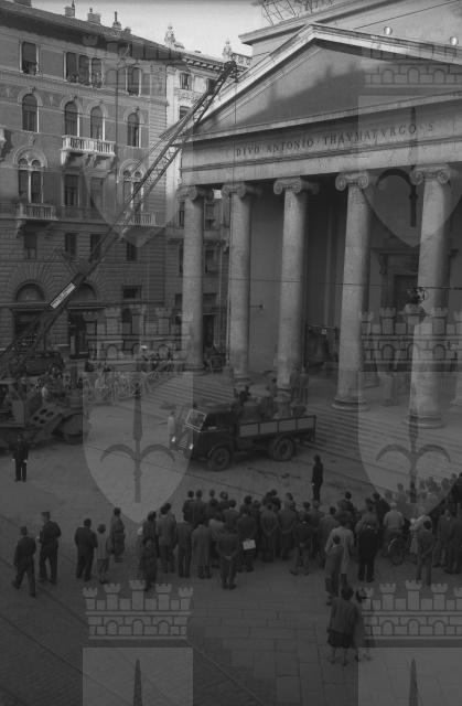 Quarantasette nuove campane, in sostituzione di quelle requisite o distrutte durante la guerra, vengono benedette dal vescovo Santin davanti alla Chiesa di Sant'Antonio Taumaturgo