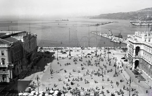 Il servizio comprende vedute di piazza Unità dall'alto in occasione della Festa dell'uva, altre vedute della città, delle rive e della baia di Sistiana