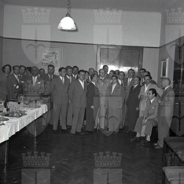 Gli industriali del legno festeggiano il capogruppo della categoria in seno all'Associazione industriali, Carlo Frandoli, insignito della commenda all'Ordine della Repubblica. Il dott. Dario Doria, presidente dell'Associazione, a nome di tutti gli industriali, offre a Frandoli l'insegna onorifica. (da: Giornale di Trieste, 20 giugno 1953)