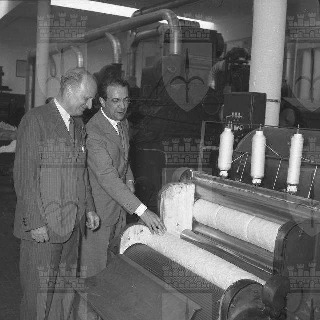 Il capo della Divisione dell'Industria della M.S.A. (Mutual Security Agency) di Roma, mr. Andrew Carey, giunto a Trieste in occasione della giornata della M.S.A. organizzata nell'ambito della manifestazioni della Fiera campionaria, visita la Raffineria Aquila, il Cotonificio San Giusto e il cantiere San Marco (da: Giornale di Trieste, 13 luglio 1953)
