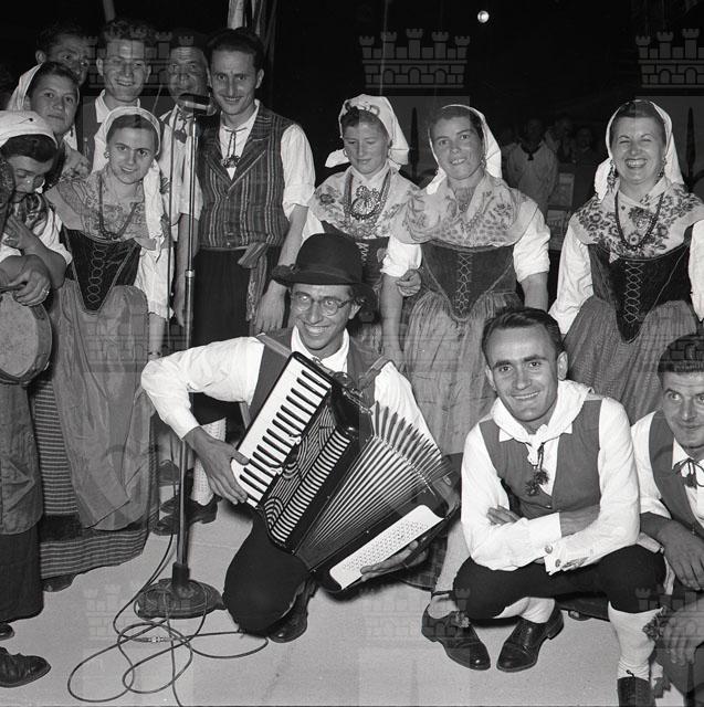 Spettacolo di un gruppo folkloristico, con sosta davanti al chiosco della Stock e foto di gruppo davanti allo stand delle Cantine Barone Leo Economo