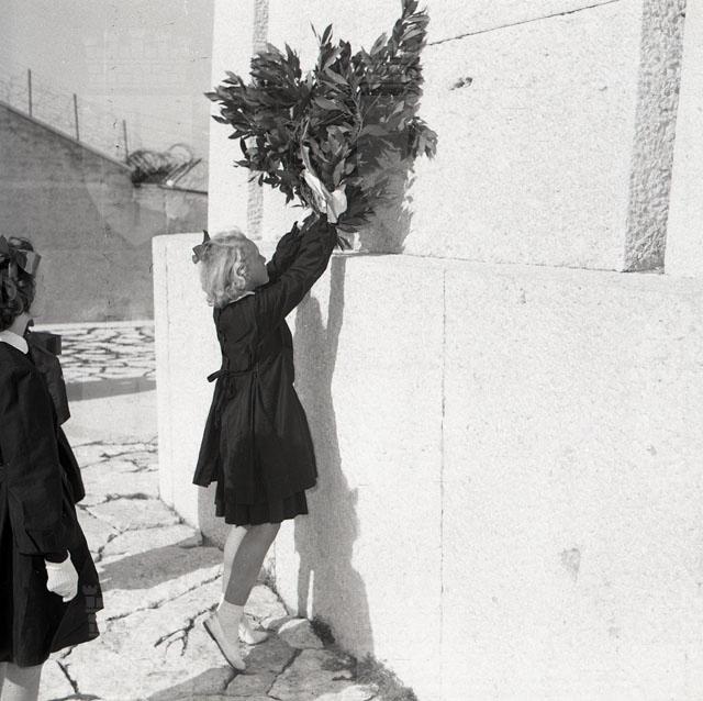 Le alunne della quinta elementare di San Stino di Livenza, vincitrici di un premio per il risparmio, sono le prime scolare d'Italia che vedono Trieste imbandierata. La foto è pubblicata su Il Giornale di Trieste del 13 ottobre.