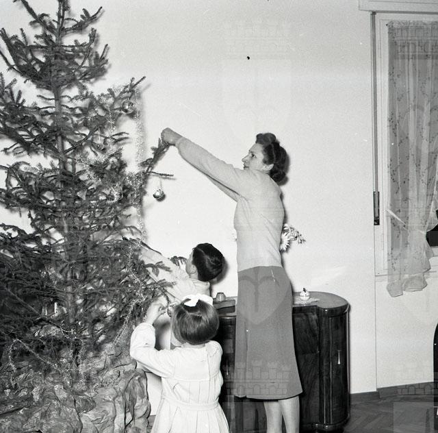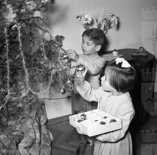 Fratellini addobbano l'albero di Natale