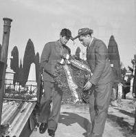 Servizio fotografico che documenta gli avvenimenti, anche drammatici, che precedettero il ritorno di Trieste all'Italia nell'ottobre del 1954. L'agenzia Giornalfoto accorpò a posteriori, in un unico ampio reportage, la documentazione fotografica prodotta a partire dai fatti di sangue dei primi di novembre 1953 fino alla partenza degli alleati. Nel cimitero di Sant'Anna, un gruppo di studenti dell'Universita di Napoli rende omaggio ai caduti negli scontri del 5 e 6 novembre 1953.