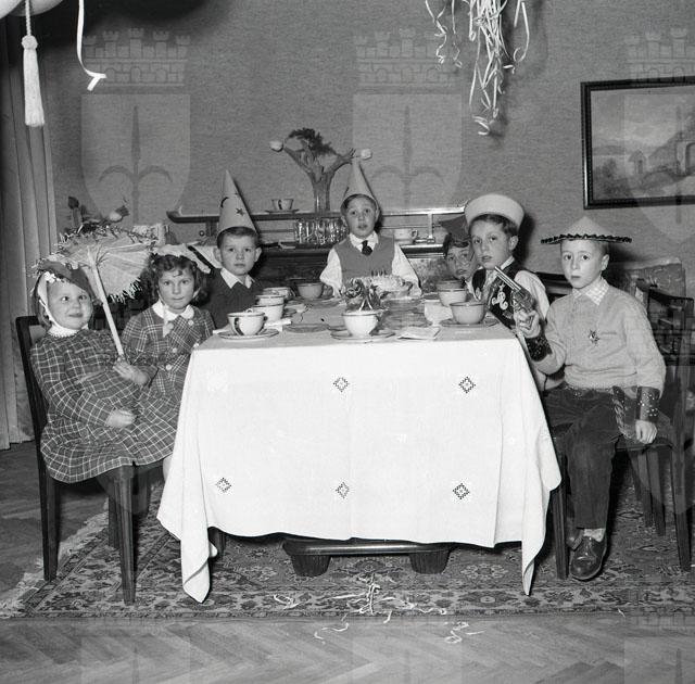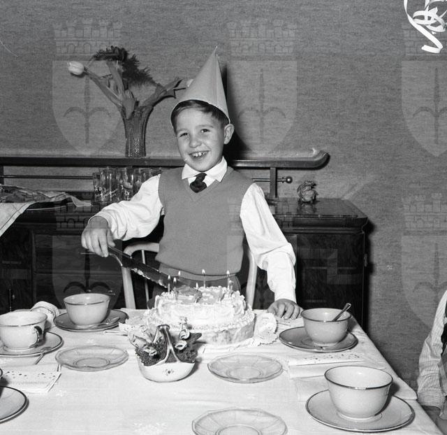 Bambino festeggia il suo settimo compleanno con gli amici, durante il Carnevale