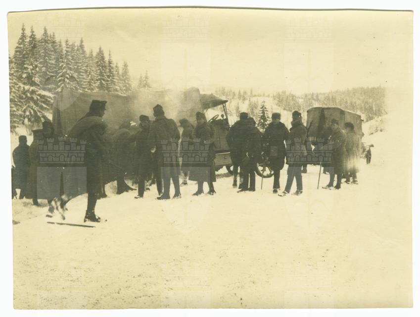 Lo squadrone tecnico del 12. Reggimento Ulani, con il tenente Pitlik, tirano fuori un camion delle truppe bavaresi da una fossa.