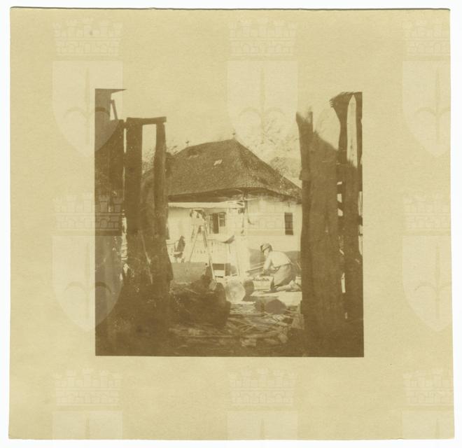 Pionieri al lavoro nel cortile del quartier generale dello squadrone tecnico del 12. Reggimento Ulani. Gaurile è Gura Văii, paese nel comune di Câmpuri, distretto di Vrancea