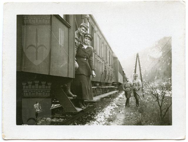 Le bella frenatrice del treno-trasporto che conduce il 12. Reggimento Ulani dalla Romania al fronte del Piave, nel tratto Pragerhof (oggi Pragersko)-Lubiana. Il 5 marzo 1918 la Romania aveva firmato a Buftea, vicino a Bucarest, un trattato di pace preliminare con gli Imperi Centrali, che verrà ratificato il 7 maggio col Trattato di Bucarest.