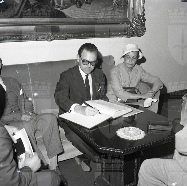 L'ambasciatore brasiliano Edmundo Penna Barbosa da Silva e il ministro Sergio Correa da Costa capo del servizio selezione emigranti dell'ambasciata del Brasile a Roma sono in visita alla nostra città ricevuti in Comune dal sindaco Franzil e in seguito al porto per verificare le condizioni dello scalo in vista di un possibile istituzione di un deposito brasiliano di legname. Il Piccolo 15.06.1960