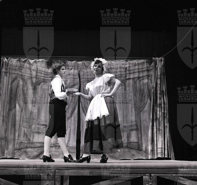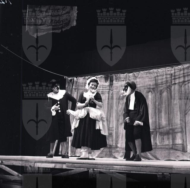 Gli allievi della scuola di recitazione del Teatro Nuovo offrono al pubblico, dopo il saggio di fine d'anno, tre repliche straordinarie dello spettacolo tratto dalla commedia di Carlo Goldoni "Arlecchino servitore di due padroni", con l'attore Giorgio Valletta, per la regia di Fulvio Tolusso. Il Piccolo Sera 08.07.1960