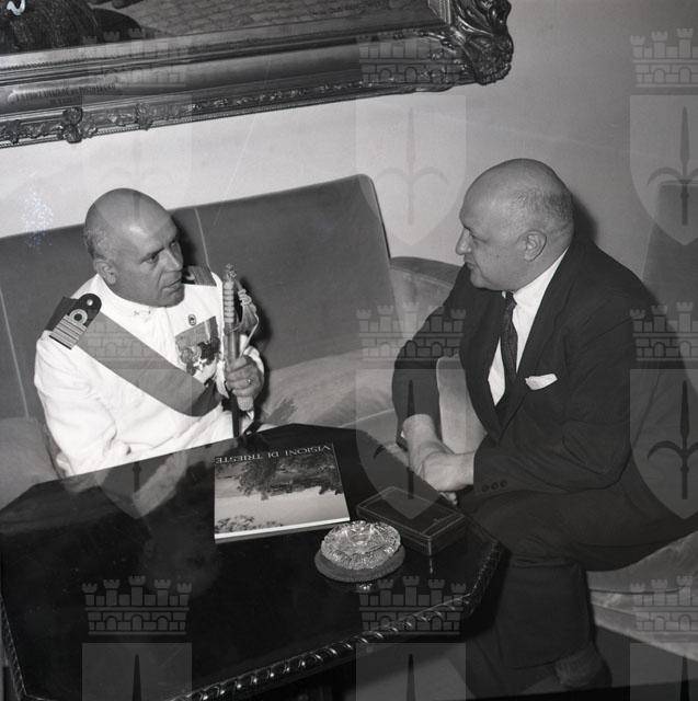 Il comandante dell'incrociatore Montecuccoli, gioiello della Marina Militare Italiana, capitano di vascello Mario Baroglio, si è recato in visita di cortesia alle maggiori autorità cittadine. Ha avuto modo di incontrare il commissario generale del Governo Palamara, il vescovo Santin, il Sindaco Franzil ed il comandante del presidio militare Vismara, tutti a loro volta ospitati sull'incrociatore. Nel pomeriggio è stato offerto dal Comune un ricevimento al Castello di San Giusto in onore di ufficiali ed allievi del Montecuccoli. Notizie tratte da Piccolo sera 20.07.1960