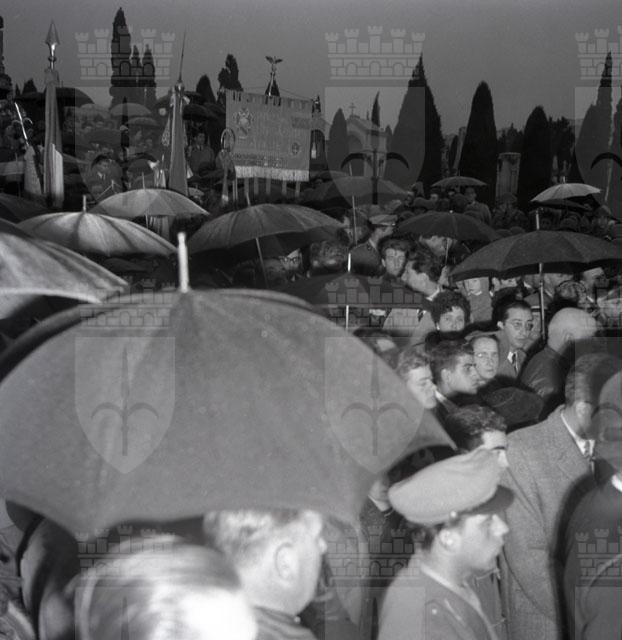 Il monumento ai Caduti è dedicato ai tredici triestini: Claudio Burla, Carlo Murra, Graziano Novelli, Mirano Sanzin e GIovanna Drassich caduti il 5 maggio 1945 in Corso, Emilio Beltramini caduto il 3 novembre 1945, Alino Conestabo caduto durante una manifestazione il 15 settembre 1945, e i sei di novembre 1953, Pietro Addobbati, Erminio Bassa, Nardino Manzi, Saverio Montano, Francesco Paglia e Antonio Zavadil. Testo tratto da Il Piccolo, 10.11.1954