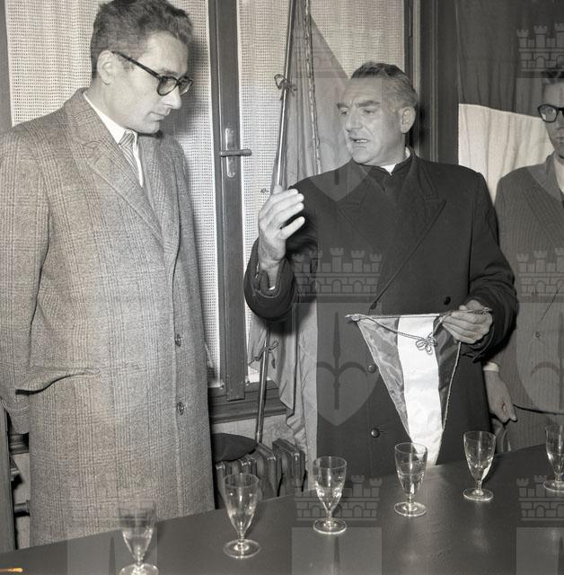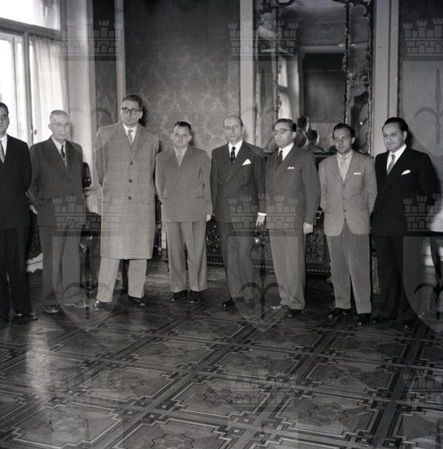 Gli allievi del Collegio di Pesaro per le vittime della guerra partecipano alla storica giornata del 26 ottobre e vengono ricevuti da Fracassi e dal sindaco Bertoli presso Villa Revoltella. Testo tratto da Il Piccolo: giornale di Trieste, 28.10.1954