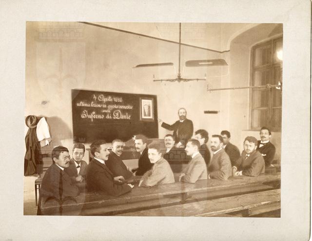 Gruppo di allievi con Filippo Zamboni: ultima lezione in questo semestre sull'Inferno di Dante: Vienna 4 aprile 1892