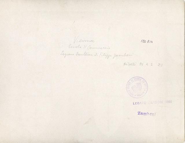 Gruppo di allievi con Filippo Zamboni: ultima lezione in questo semestre sull'Inferno di Dante: Vienna 4 aprile 1892