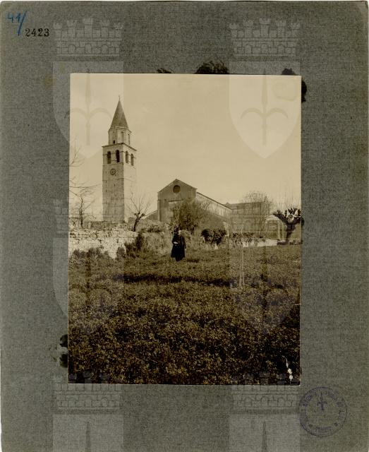La basilica e il campanile di Aquileia. Nella foto vi è ritratto anche l'architetto Ruggero Berlam.