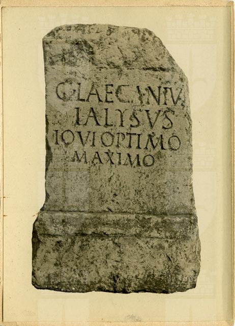 Ara rinvenuta vicino a Pola e precisamente a Dignano, presso San Michele di Bagnole. Il testo dell'iscrizione, dedicata a Giove, recita: C(aius) Laecanius pIalysus pIovi Optimo Maximo. La stele è conservata presso l'Orto Lapidario del Museo di Storia ed Arte di Trieste.