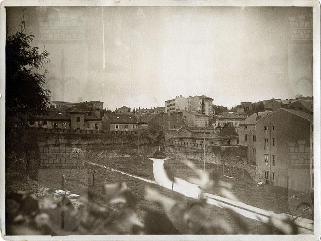 Veduta delle mura quattro-cinquecentesche che corrono lungo il lato orientale e meridionale del giardino che si estende davanti al Museo di Storia ed Arte, detto Giardino del Capitano per essere stato di pertinenza del capitano cesareo che reggeva la città in nome dell'imperatore d'Austria. Le mura sono realizzate in corsi regolari di pietra arenacea e scandite da una successione di archi che sorreggevano camminamenti protetti da merlature. La fortificazione risale all'epoca dell'imperatore d'Austria Federico III (1470) o piuttosto alla prima metà del XVI secolo.