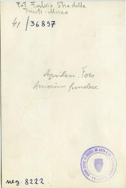 Pluteo lapideo con amorino ghirlandoforo dal foro di Aquileia. Il pluteo, conservato in condizione frammentaria, ritrae un amorino che regge una ghirlanda carica di foglie e fiori al quale doveva corrispondere, in posizione speculare a sostenere il capo opposto del festone, un secondo personaggio alato. La lastra appartiene al tratto orientale del portico che circondava il foro nei lati lunghi e nel meridionale, e più precisamente all'attico che lo sormontava, dove si alternava a plinti decorati con teste di Medusa e di Giove Ammone: i plinti erano collocati in corrispondenza delle colonne e i plutei degli intercolumni. Il programma decorativo così composto, presente in altri fori di area altoadriatica, rivestiva una precisa valenza simbolica collegabile alla tematica celebrativa del culto imperiale, percepibile soprattutto nelle protomi di Giove Ammone e Medusa, che rappresenterebbero gli estremi Orientale e Occidentale dell'Impero. Ad Aquileia questa decorazione, opera di maestranze attive anche a Tergeste, dove teste affini di Medusa e Giove Ammone decoravano la basilica forense, si pone in età giulio-claudia, verosimilmente negli anni immediatamente successivi la metà del I sec. d.C.