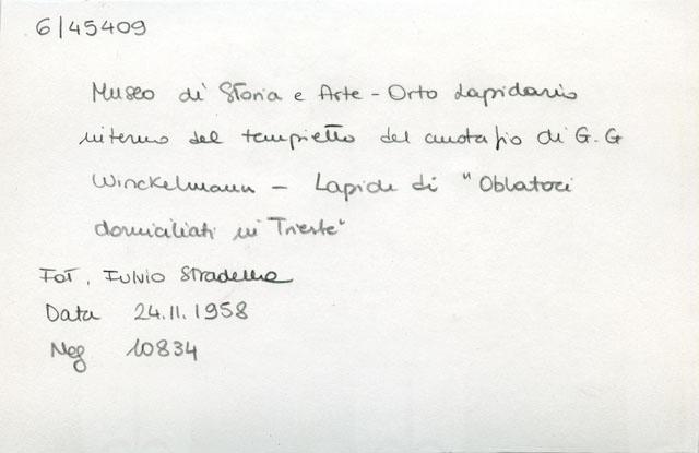 Lapide con elenco degli oblatori domiciliati a Trieste un tempo conservata nel tempietto neoclassico contenente il cenotafio di G.G. Winckelmann presso l'Orto Lapidario del Museo di Storia ed Arte di Trieste.
