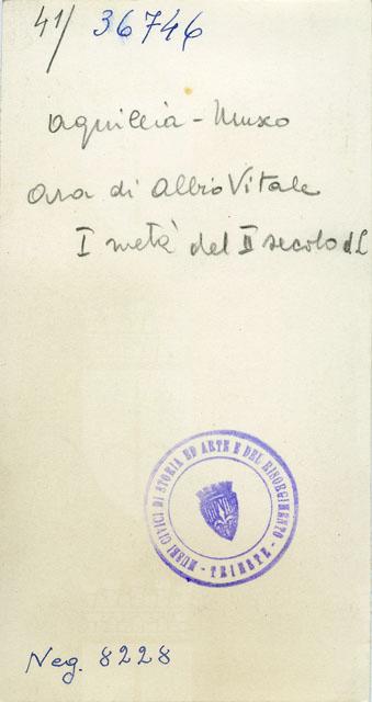 Inscriptiones Aquileiae Johannes Baptista Brusin. - Udine : Deputazione di storia patria per il Friuli, 1991-1993. - 3 v. ; 31 cm., vol. I pp. 270-271, nr. 0578