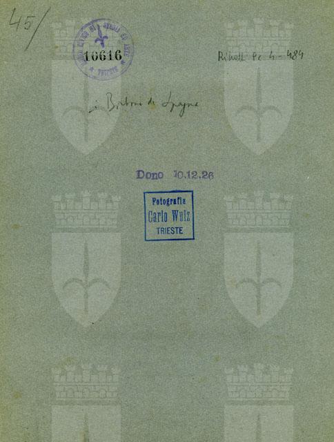 Proprietà Ente pubblico territoriale; Civici musei di Storia ed Arte; donazione; Wulz, Carlo; 1926/12/10