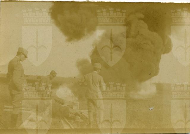 Esplosione di una granata durante la prima guerra mondiale.
