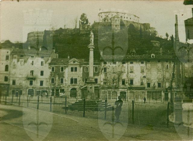 Piazza della Vittoria a Gorizia cinta da un reticolato