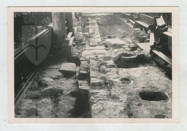 Strada romana vista dal presbiterio tra nil muro del tempio capitolino e il muro della basilica del V sec.