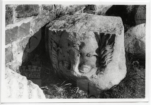 Fregio in pietra raffigurante una testa nel piazzale della cattedrale a San Giusto