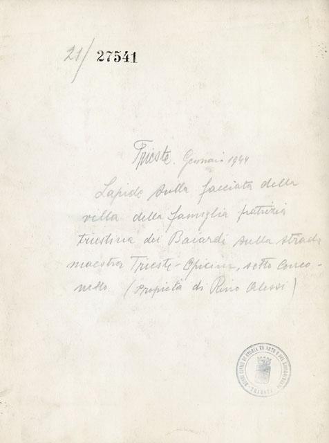 Lapide sulla villa della famiglia patrizia triestina dei Baiardi